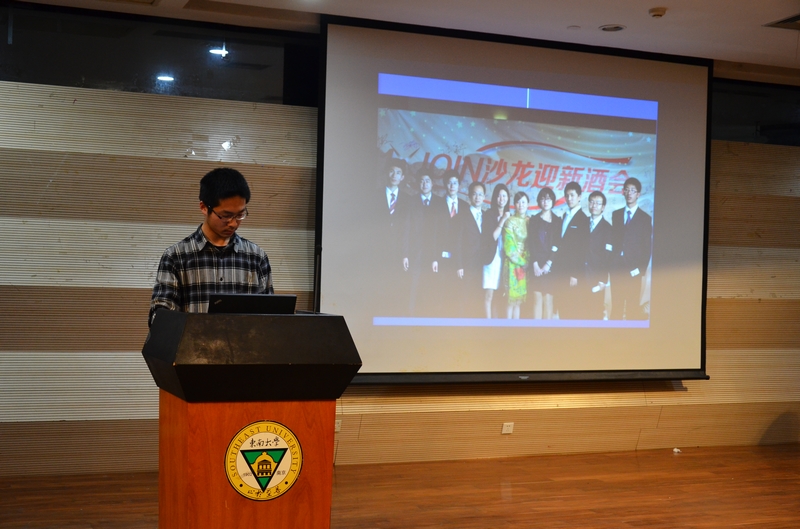 在能环、土木等四个院系答辩结束后,团委组织部副部长韩婧和“好青年”代表兰舟仪伴随着《好青年》的音乐走上了演讲台。大屏幕上播放的视频既缩影了由员工会和JOIN艺术团牵头,在团委组织部的组织下,各团支部积极响应举办的主题系列活动“我们都是好青年”,也以此为载体,用新颖的形式展现了我们交院团结创新、勤奋实干的风采,让大家眼前一亮。从重燃了每一位学子迈入大学校园的奋斗激情的“身边榜样、前行力量”主题教育活动评选晚会;到新生文化季汇演、荟萃艺堂大型汇报演出、“将欢乐进行到底”新老生联欢、“腾交杯”辩论赛。各类特色文娱活动展现了我交院员工丰富的人文素养和多彩的青春生活;在环九龙湖自行车赛、校运会、“大力杯”拔河赛等体育赛事上创造的佳绩,展示出了我们健康的体魄和坚韧的品格;“9.10教师节系列活动”和一系列学术科技活动的成功举办表现了我们勇于钻研的学术精神和感恩、奉献的人文情怀……
