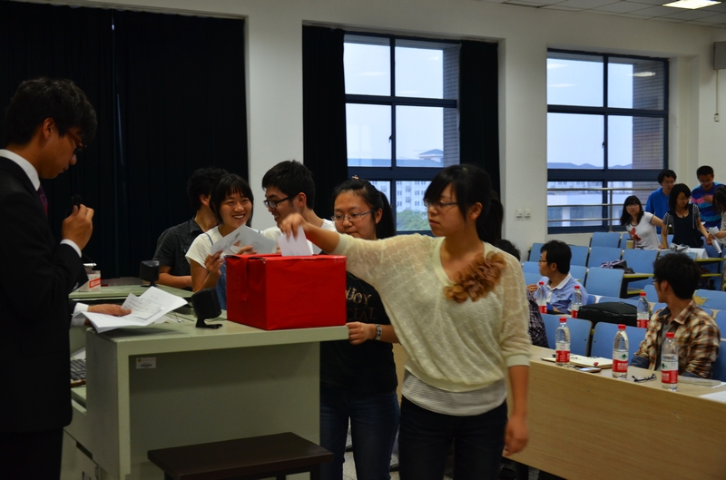 同学们经过慎重思考,投出了自己的一票,工作人员迅速进行计票。经过统计,魏来当选第四届JOIN艺术团团长一职。