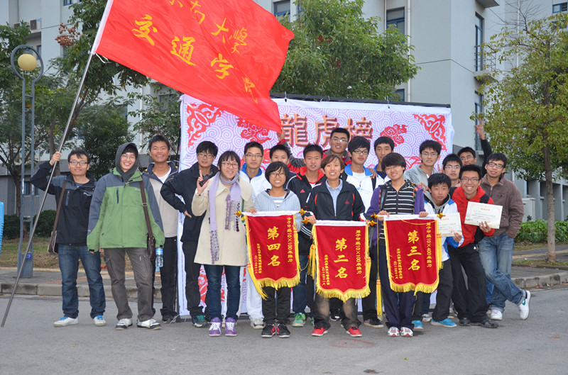11月9日上午运动会开幕式在绵绵细雨中如期举行,入场式上交院健儿们精神抖擞,展示了交通工具的发展与演变,并摆出弓箭模型,直奔最高领奖台,预示着交院健儿们将会在本次运动会上努力拼搏,向各项比赛的最高领奖台发起冲击。