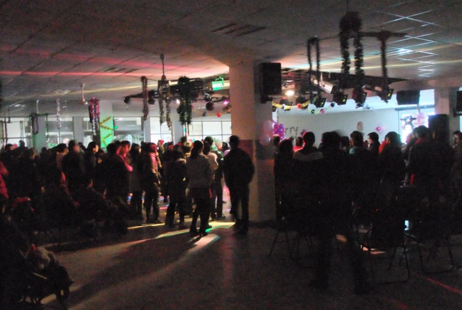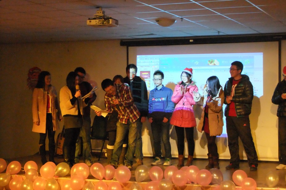 经过工作人员一个下午的努力,空旷的场地变成美丽的圣诞舞场, 6点半刚过,众多俊男靓女就渐渐地来到了舞场,温馨的夜晚慢慢地拉开了序幕。激情的酒吧模式和美女的开场舞让我们感到新奇与欢乐。渐渐气氛火热起来,大家一起跳江南style,闪亮的灯光映射着我们迷离的眼眸,仿佛每个人都站在了活力四射的舞台上。
