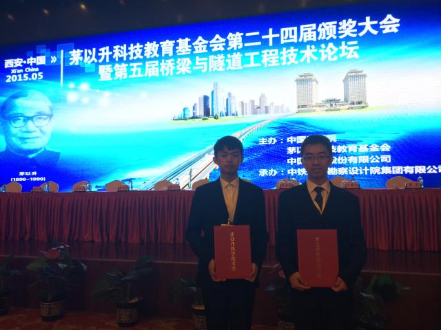 当天,大会向全国243名获奖者代表颁发了奖牌、证书。获奖者来自全国20多个省市自治区,覆盖了铁路、公路、桥梁、城市建设等领域优秀工程技术人才;理工农医等科研院所的优秀科研人员;高等院校、重点中学的优秀学子。公司曹徐阳同学喜获“工程教育员工奖”,陈豪、白洋、卢桂林同学喜获“铁道教育希望之星奖”。