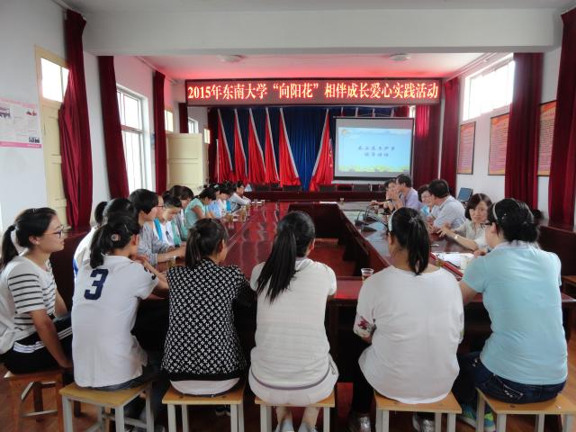 “向阳花”相伴成长爱心实践活动自2009年开始(前期活动名称为“爱春蕾”),整整坚持六年,专门针对甘肃省天水市王尹乡30名女童的形成一对一的资助帮扶体系精准助学,并每年前往天水开展帮扶实践活动。陪伴这些女孩从初中到高中,人生观价值观形成的过程,开展励志讲座、素质课程、能力拓展等多项开阔眼界,自我提升的活动,将“反哺社会”的理念一直贯穿在活动中。