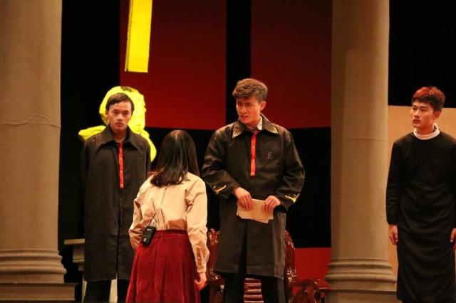 12月4日JOIN话剧团出品的话剧《萨勒姆的女巫》在焦廷标馆正式演出。bevictor伟德官网老师及辅导员,JOIN话剧团表演课老师于鹤年,话剧团11,12级团员和许多在校员工共同入场观看了这部经典的话剧。整部话剧布景华丽,音乐激荡人心,表演淋漓尽致,在场的观众无不对说谎的少女感到厌恶,被正直的普朗克托人格魅力所吸引。表演结束的时候,所有观众共同发出由衷的赞叹和如雷的掌声。这些掌声是对演员,导演和幕后工作者最大的认同和赞赏。最终由本剧的导演宋晨和全体演员上台谢幕。这部剧告诉了我们,如果信仰被扭曲,那么我们就要摒弃;如果非要出卖自己的灵魂,那么我们宁可选择死亡。