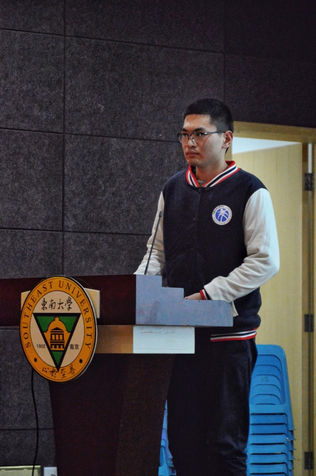 为了更好的展现茅以升班风采,也为了给15级茅以升班同学做出表率,14级交工班班长史科同学向全体老师和同学做了班级风采展示。14级茅以升班无论在学习上、思想建设上还是班级活动上,都取得了骄人的成绩。短短的几分钟视频里反映出他们的勤奋、拼搏、活力。在座的15、16级同学都深受感染,在钦佩与羡慕之余也充满斗志与信心。史科同学也相信新的15级茅班成员一定会对余下的三年老员工活充满期待与热情,带给茅以升班带来新的活力、新的辉煌。