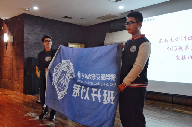 最后,校院领导向15级茅以升班的同学们颁发茅以升班入班证书。入班证书是茅以升班员工班级荣誉感和责任感的象征,它是一种荣誉,更是一份沉甸甸的责任。14、15级茅以升班的代表也完成了班旗的交接,并做了班级展示。