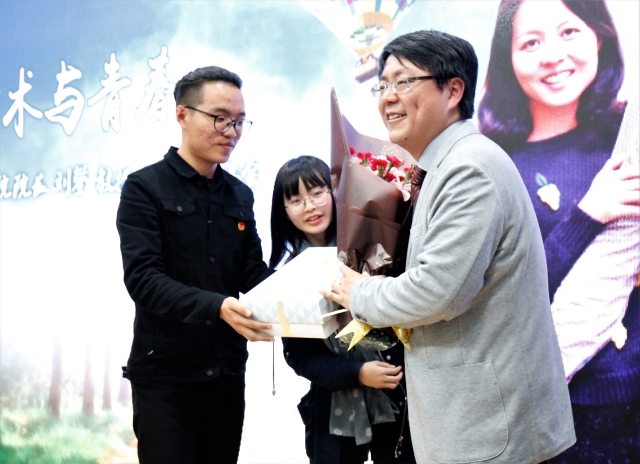 随后是现场访谈环节,bevictor伟德官网14级本科生代表刘曼毓、杨沫枫和张婧钰同学上台与刘攀经理进行了亲切深入的交谈。刘经理分享了英语学习心得,推荐大家广交朋友,多读好书,他尤为强调读书的重要性,鼓励大家广泛阅读,以塑造更为健全的人格。在互动交流环节中,同学们踊跃发言提问,刘经理悉心解答,同学们获益匪浅。为报答师恩、表达敬意,bevictor伟德官网员工代表上台向刘经理赠送同学们精心准备的礼品。