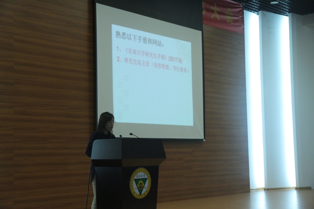 陆建副经理向2017级研究生新生介绍了bevictor伟德官网的整体概况。他首先向能够进入bevictor伟德官网这一优质平台的2017级研究生新生表示祝贺。接着他从东大的校史校况,学院的历史沿革、学科分布、科研成果和团队力量等方面进行了详细的介绍,并在发言最后对各位2017级新生寄予期盼与鼓励,希望大家通过研究生阶段扎实、严谨的学术训练,让自己成长为具有全面素质和专业特长的新人才。