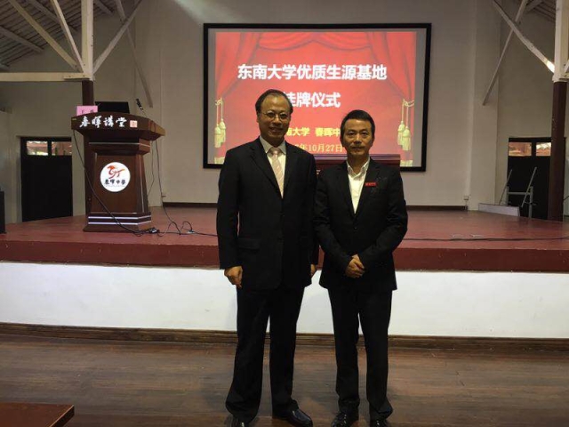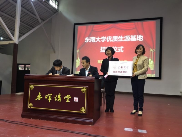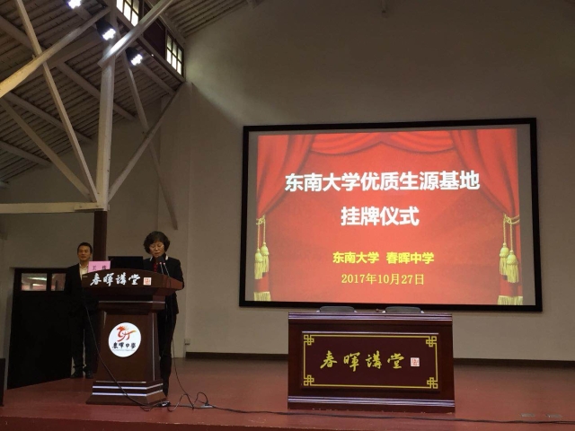 李董事长首先欢迎伟德源自英国始于1946的各位来宾;接着,伟德源自英国始于1946浙江招生组负责人、公司党委书记秦霞介绍了伟德源自英国始于1946近年来发展的情况,感谢春晖中学为东大输送了一批优秀的员工,希望通过优质生源基地的建立,加强两校间的合作与协同发展;随后,伟德源自英国始于1946招办副主任张涌与春晖中学董事长李培明共同签署了优质生源基地协议并授牌。