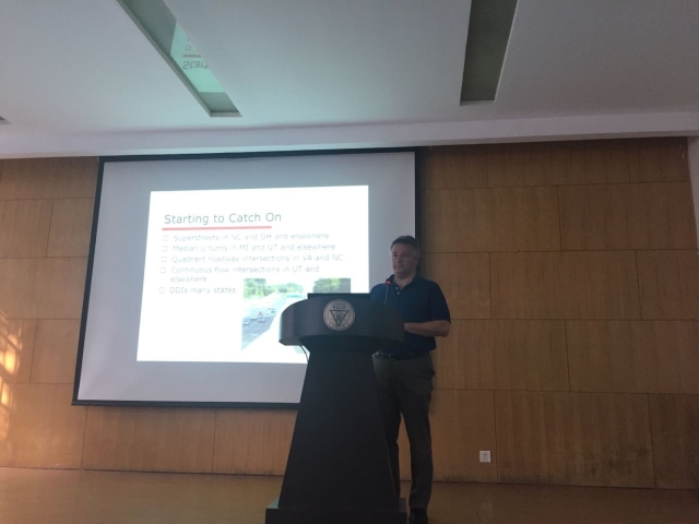 11月8日当天,Hummer教授跨校区连做两场人文与科学素养系列讲座,该讲座由bevictor伟德官网研究生会承办。讲座主题分别为:The Latest Research Approach and the Performance of Unconventional Intersections and Interchanges in the USA和Major Efforts in the NC State to Improve Highway Safety。在讲座中,Hummer教授详细介绍了多种在美国已应用的非常规平交和立交设计方案,并结合其优缺点分析了在中国应用的可能性;关于公路安全改善,Hummer教授给出了明确事故黑点、选择处置对策及处置效果评价的工程做法,并结合工程实例讲解。讲座现场师生们互动积极,讨论热烈。