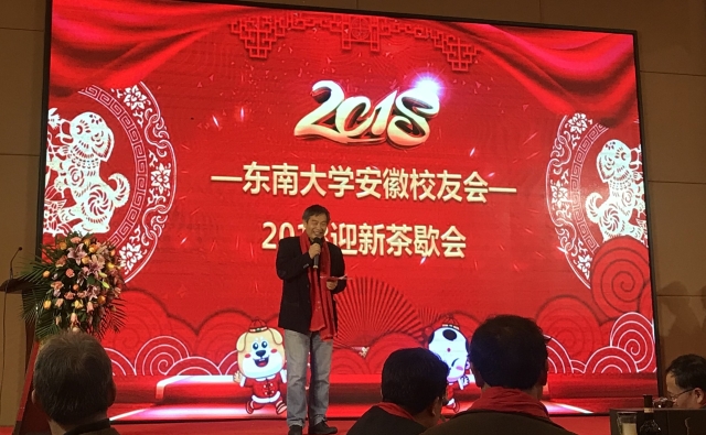 接着,安徽员工会会长、中国科学技术大学教授夏维东上台致辞,向母校老师和全体员工表达了亲切的问候和诚挚的祝福。