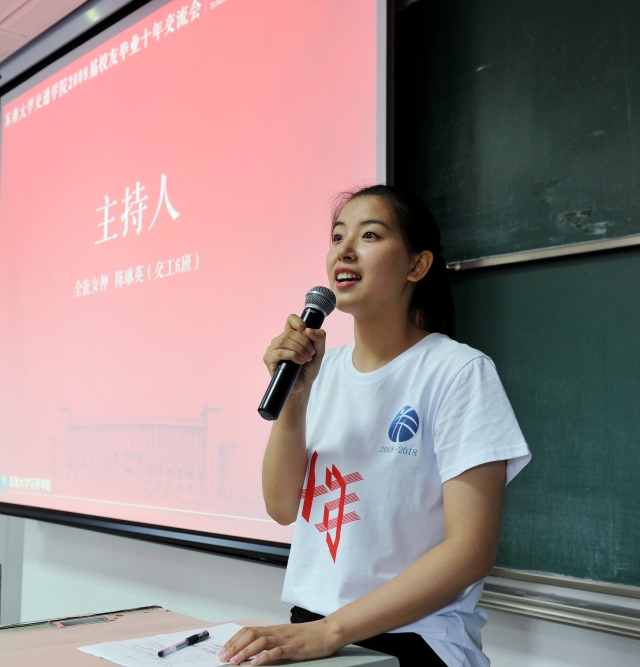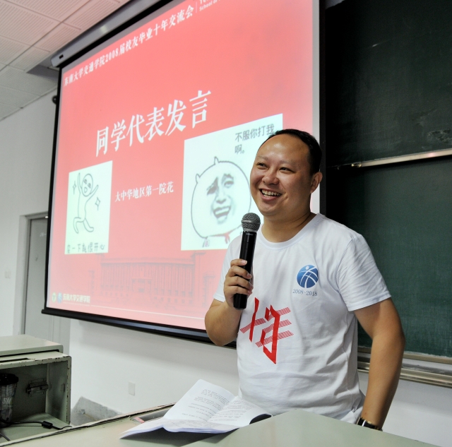6月18日上午,2008届员工毕业十年交流会在九龙湖校区教六104隆重举行。党委书记秦霞老师,道路学科负责人黄晓明老师,地信学科负责人蔡先华老师,港航学科宣国良老师,班主任许映泉老师、白桦老师、杨晓梅老师,辅导员沈溶老师、华晓烨老师受邀出席了交流会。交流会由04级交工6班的陈琳英同学主持。