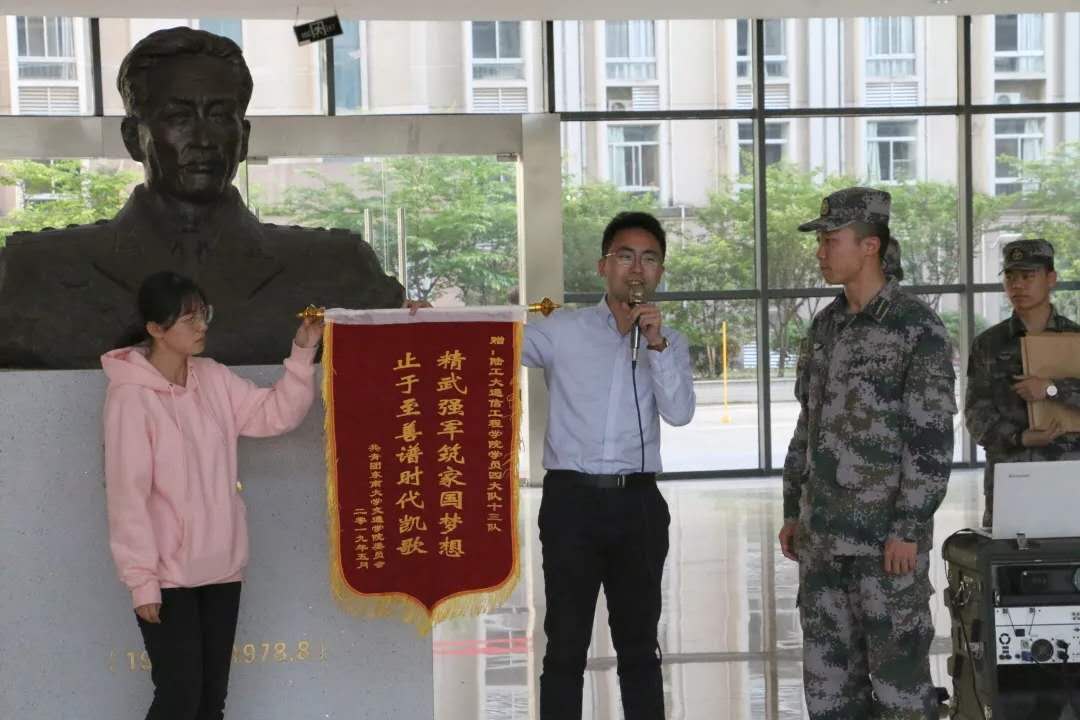 在活动即将结束时,为表示感谢,共青团bevictor伟德官网委员会向陆军工程大学通信工程学院学员十三队敬赠锦旗一面,锦旗上书写着“精武强军筑家国梦想,止于至善谱时代凯歌”十八字,意在双方共筑国防力量,助力中国梦!同时陆工大学员们也向来访的东大师生赠送了纪念品。最后,参与活动的全体人员合影留念,活动在亲切热烈的氛围中圆满结束。
