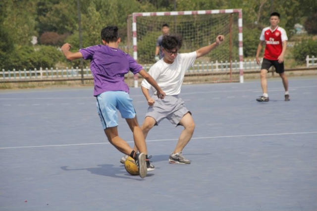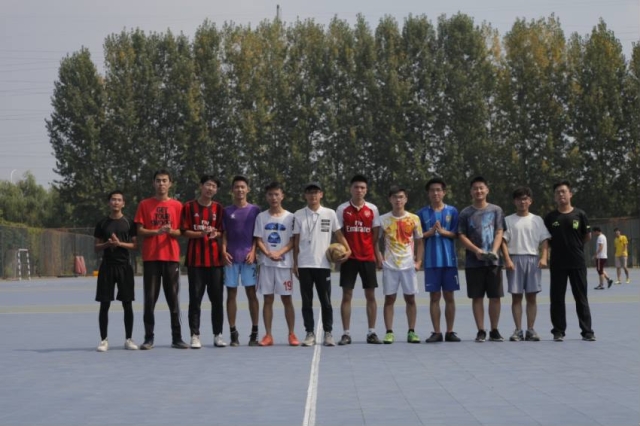 比赛在正午开打,虽已入秋,但是空气还是透着夏日的温度,些许闷热却阻挡不了同学们的热情和激情,双方球员都早早来到球场热身。决赛对阵双方是218161班和210171&2班,这是一场针锋对麦芒的较量。两支球队在之前的小组赛和淘汰赛都展现出了良好的状态,一路过关斩将,向冠军发起冲刺。