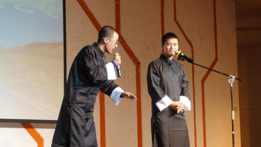 成语展现了汉语表达巨大而丰富内涵的能力和语义融合能力。短短几个汉字,往往包涵了一段历史、一个故事、一个典故、一个道理、一个哲理,它在历史的演变中自然形成。每一个成语几乎都有它的来历。各朝各代的文化和历史保存在成语之中,这使成语具有各朝各代鲜明的文化特点和时代特色。大二地信班的相声《成语新说》带领我们领略成语的重要性。