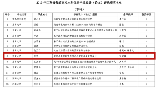 相关链接:2019年江苏省普通高校本专科优秀毕业设计(论文)评选结果公示