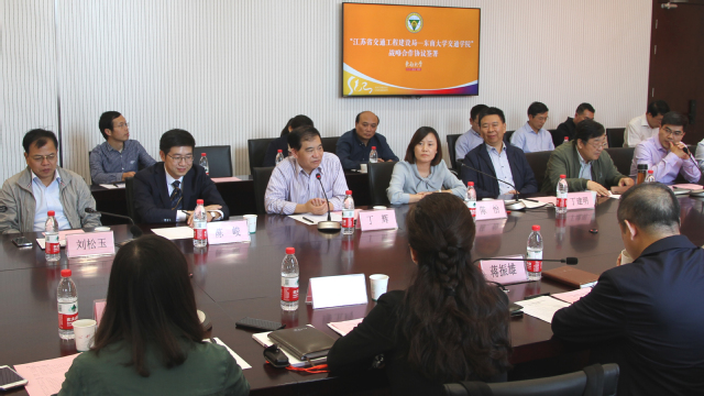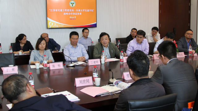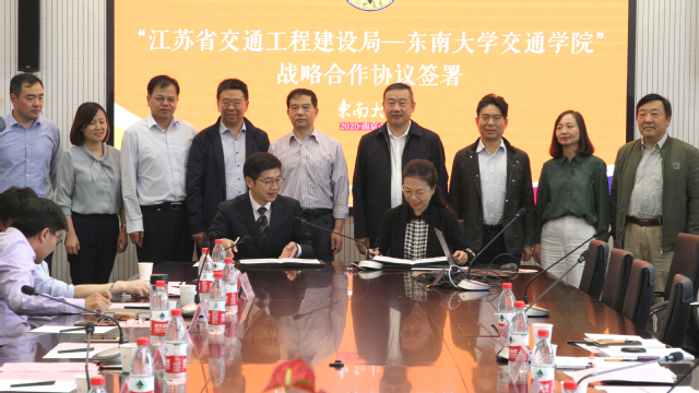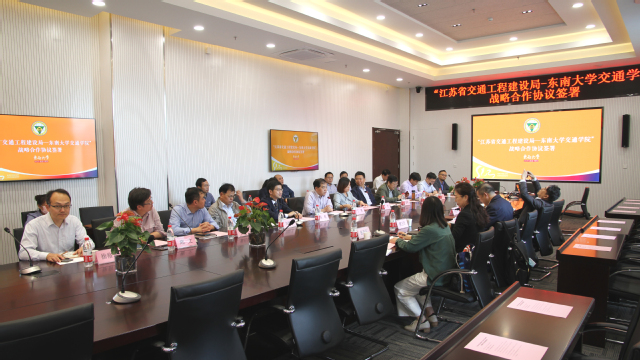 10月12日下午,“江苏省交通工程建设局-bevictor伟德官网”战略合作协议签署仪式在伟德源自英国始于1946九龙湖校区bevictor伟德官网大楼331会议室举行,江苏省交通工程建设局局长蒋振雄、副局长缪玉玲、质量安全技术监督处(总工室)副处长(主持工作)刘世同、综合处副处长曹普军、综合处副科长缪文雯出席本次签约仪式。伟德源自英国始于1946副董事长丁辉,公司党委书记陈怡、经理陈峻,交通规划设计研究院经理丁建明,bevictor伟德官网岩土学科学术带头人刘松玉、桥梁学科学术带头人黄侨,交通学副经理顾兴宇、马涛,桥梁工程系主任熊文,地下工程系主任章定文,港航工程系主任徐宿东,交通规划设计研究院副经理曹菲,以及bevictor伟德官网相关学科教师出席参会。签约仪式由陈怡书记主持。