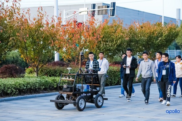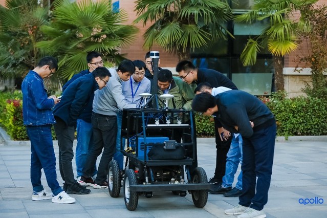 针对实车的循迹实验将本次培训引领到了高潮。基于软件的学习,现场的培训人员亲手操纵了百度Apollo车,实现了其低速短距离的自动驾驶。