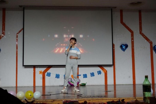 “狼烟起、江山北望,龙旗卷、马长嘶、剑气如霜。心似黄河水茫茫,二十年纵横间谁能相抗?”213181班班主任朱小华老师亲自登台,和全班同学一起带来了合唱《精忠报国》,晚会也随之进人了最后的高潮。同学无意选择的歌曲,却暗暗契合了测绘学科成立二十年来的不凡历程。一句“二十年纵横间谁能相抗?”歌词,真的能让意会的人心潮澎湃。