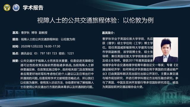 (讲座12.22)视障人士的公共交通旅程体验:以伦敦为例