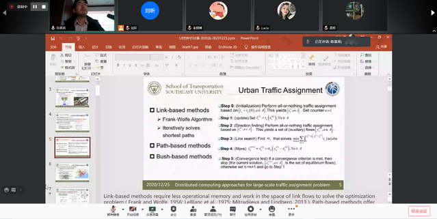 2020年12月25日,天津大学的朱宁副教授就有限资源条件下的救援路径优化和调度研究开展了线上学术报告,接着,伟德源自英国始于1946的刘志远教授就超大规模交通分配问题的并行计算方法开展了线下学术报告。报告由陈景旭老师主持,公司老师以及相关专业的同学参加了线上线下的研讨会。