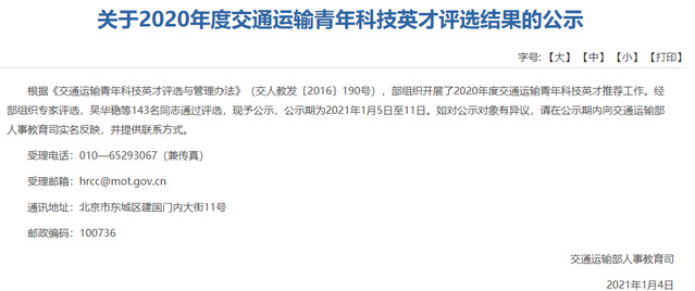 近日,交通运输部网站公布了2020年度交通运输青年科技英才评选结果。公司董侨教授、徐铖铖教授成功入选2020年度交通运输青年科技英才。