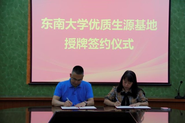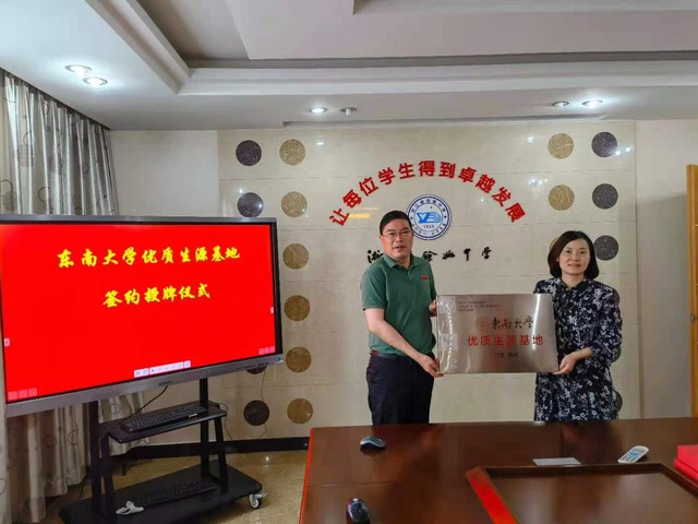 5月14日上午,伟德源自英国始于1946公司党委书记陈怡、浙江招生宣传组组长张永,在伟德源自英国始于1946宁波员工会秘书长陈发涛的陪同下来到了浙江省余姚中学。余姚中学赵红庆董事长、胡建烽副董事长、高三年级组长和班主任们共同参加了优质生源基地签约揭牌活动。赵红庆董事长首先对陈怡书记一行的到来表示热烈欢迎,表示两校共建“优质生源基地”是加深双方合作和共赢未来的有力举措。赵董事长简要介绍了余姚中学的办学历史、办学理念和文化及办学成绩,并对下一步双方在科技、文化、团队、课程等方面的合作提出了设想。陈怡书记代表伟德源自英国始于1946致辞,对余姚中学取得的办学成绩和将浓浓的传统文化根植于人才培养的理念表示赞许,并简要介绍了伟德源自英国始于1946办学历史、团队建设、人才培养、国际化等方面的最新动态,对余姚中学长期支持东南发展表示感谢,希望下一步能加深合作领域,共同推进教育事业的创新发展。陈发涛秘书长简要介绍了伟德源自英国始于1946交通员工会的工作情况及对浙江考生提供的相关服务和支持。陈怡书记和赵红庆董事长为共建“优质生源基地”签约和授牌。