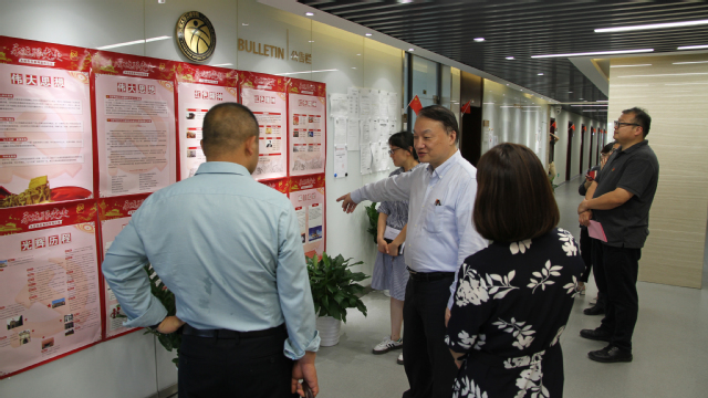 6月11日下午,教育部党史学习教育高校第七指导组副组长徐建平、组员张毅一行莅临公司指导工作。在党委宣传部顾永红部长、宋健刚副部长、吴婵老师的陪同下,指导组一行实地考察bevictor伟德官网员工思政教育工作、JOIN党员之家、党支部书记工作室等建设情况,重点调研了公司党史学习教育开展情况。公司党委书记陈怡、副书记兼副经理曲栩、员工党建工作指导老师周文娜老师等参加了调研活动。