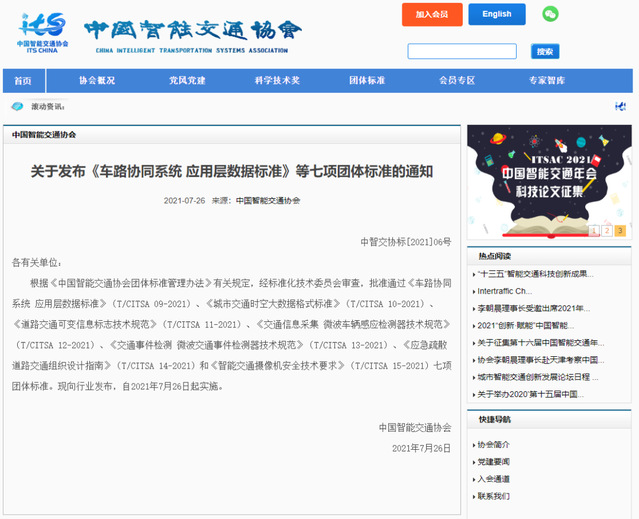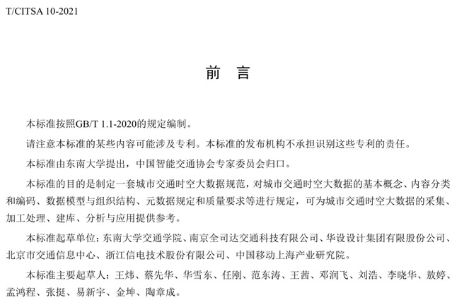 依托国家重点研发计划“城市多模式交通网运行仿真系统平台开发”项目,由公司王炜教授与任刚教授主编的《城市交通时空大数据格式标准》(T/CITSA 10-2021)与《应急疏散道路交通组织设计指南》(T/CITSA 14-2021)两项团体标准,根据《中国智能交通协会团体标准管理办法》有关规定,经标准化技术委员会审查、批准,其自2021年7月26日起发布实施。