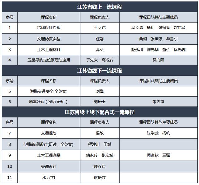 近日,江苏省教育厅公布了江苏省一流本科课程认定结果,公司《结构设计原理》《道路交通安全(全英文》《交通规划》等11门课程入选,其中线上一流课程4门、线下一流课程2门、线上线下混合式一流课程5门。