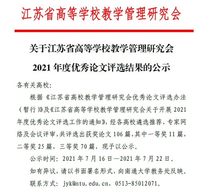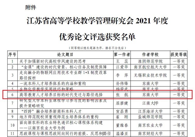 近期,江苏省高等学校教学管理研究会公布了2021年度优秀论文评选结果,公司张航老师《高等教育人才培养目标的时代变迁与路径选择》荣获2021年度优秀论文。