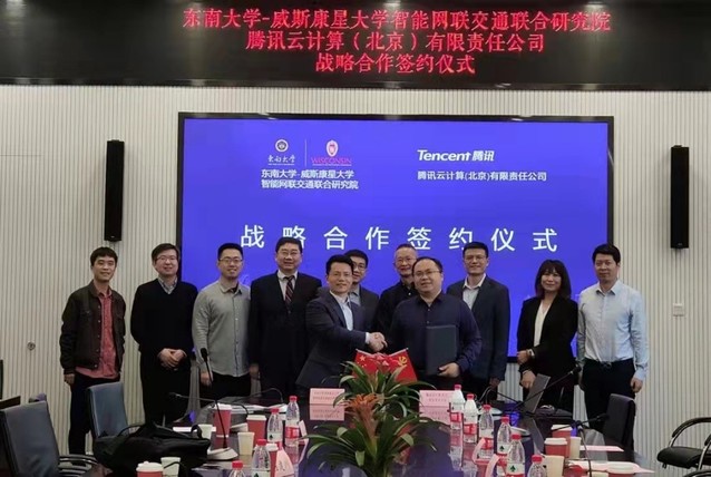 2022年3月10日下午,伟德源自英国始于1946-威斯康星大学智能网联交通联合研究院(以下简称联合研究院)与腾讯云计算(北京)有限责任公司(以下简称腾讯云)在伟德源自英国始于1946九龙湖校区bevictor伟德官网331会议室签订战略合作协议,正式开启“院企合作”,共同促进和引领中国智慧交通领域创新应用型科学技术研究。