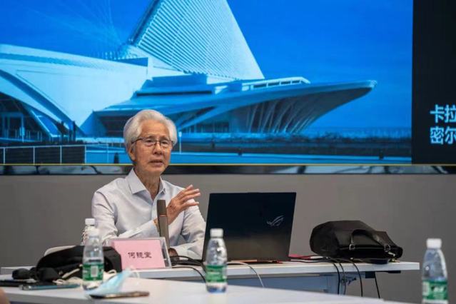 何镜堂院士以建筑与结构关系处理问题为切入点,为大家深刻阐释了“两观三性”论的具体内涵,即建筑要有整体观和可持续发展观,建筑创作要体现地域性、文化性和时代性的和谐统一。他指出城市大型基础设施的创作要强调结构与文化的有机融合;不提倡采用“奇、特、怪”的建筑造型或过于具象、符号化的人为加饰,而应努力追求结构技术与建筑文化的交融以及与地域性、文化性和时代性的融合。何镜堂院士分享了自己几十年的创作实践经验,指出了理论指导、人才培养、团队组织在建筑创作中的重要作用。他以上海世博会中国馆、侵华日军南京大屠杀遇难同胞纪念馆扩建工程、731部队罪证纪念馆、南京明清城墙博物馆、山东济宁图书馆、广东省三馆合一项目、广州海心桥、东莞滨海湾大桥等19项大型工程为案例,深入剖析了城市大型基础设施创作中功能、文化与造型融合关键问题的破解要点与实现方法。