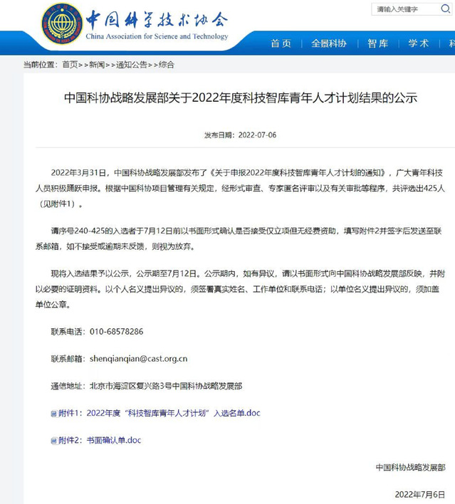 7月6日,中国科协战略发展部发布《关于2022年度科技智库青年人才计划结果的公示》,共评选出425人。公司许翔、涂然2位老师入选。涂然老师课题为《考虑行程-能耗不确定性的城市电动公交服务优化决策建议》,许翔老师课题为《基于深度学习的大型桥梁安全运维》。
