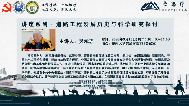 “大道行思·一路知行”讲座系列 | 道路工程学科发展与科学研究探讨(活动预告)
