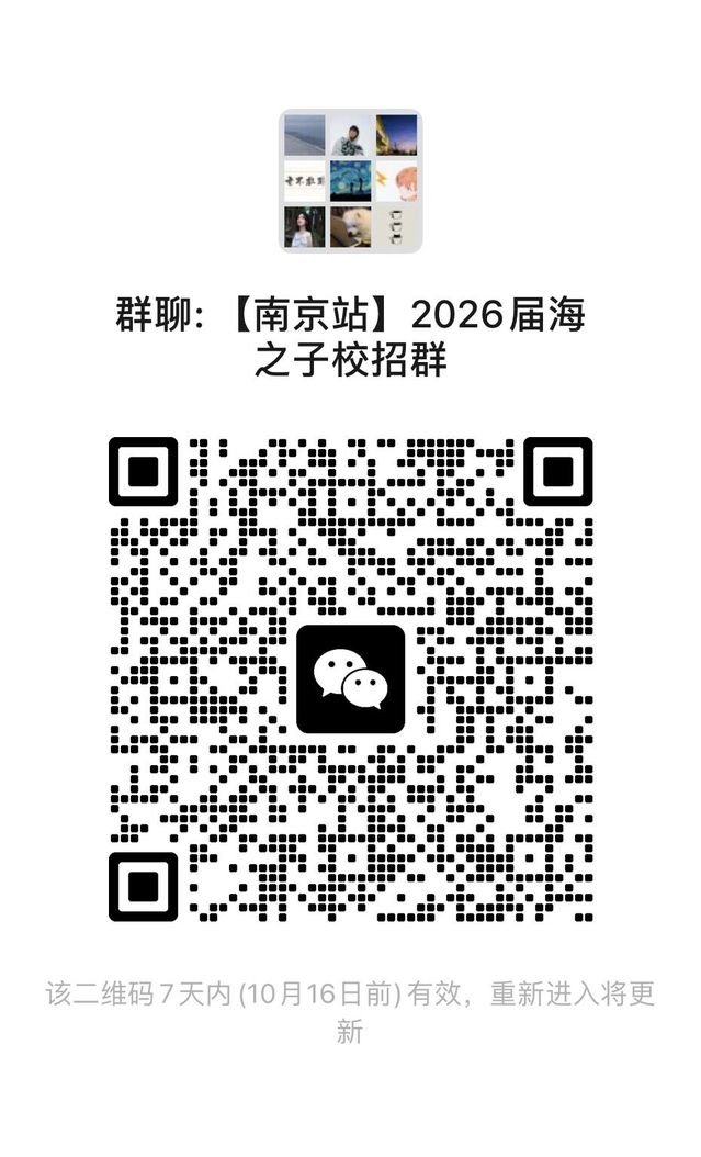 南京站宣讲及面试将于10月15-17日开展,欢迎加入【南京站-2026届海之子校招群】。更多宣讲信息、面试安排、企业动态···进群即知!