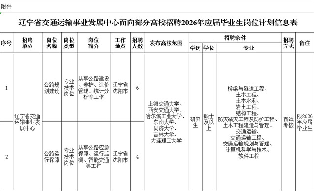 招聘岗位:公路规划建设、公路运行保障。