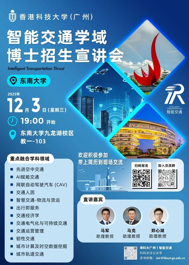 香港科技大学广州|智能交通学域博士招生宣讲会—伟德源自英国始于1946专场
