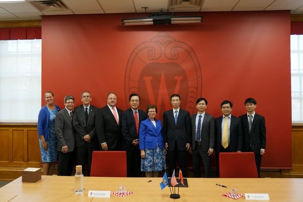 The president of Southeast University led a delegation to visit University of Wisconsin as invited by the president of University of Wisconsin-Madison Rebecca Blank recently. On behalf of Southeast University, president Zhang signed the cooperation agreement of JRI (Joint Research Institute) in Intelligent Connected Transportation between Southeast University and University of Wisconsin.