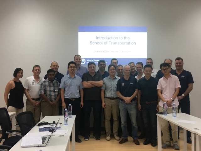 A delegation organized by the Australian Asphalt Pavement Association (AAPA) visited School of Transportation on 25th July. A workshop about “Development and Application of Advanced Asphalt Pavement Technology” was held by Professor Liu Zhiyuan. The delegation and professors from our school shared their researches and experiences through this workshop. Prof. Huang Xiaoming, Prof. Ma Tao, Prof. Liu Zhiyuan, Dr. Zhang Weiguang, Dr. Xu Guangji and students from related major from our school also attended this workshop.